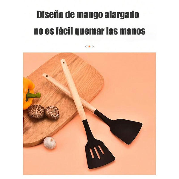 El kit incluye 11 utensilios esenciales para cubrir todas tus necesidades culinarias diarias.